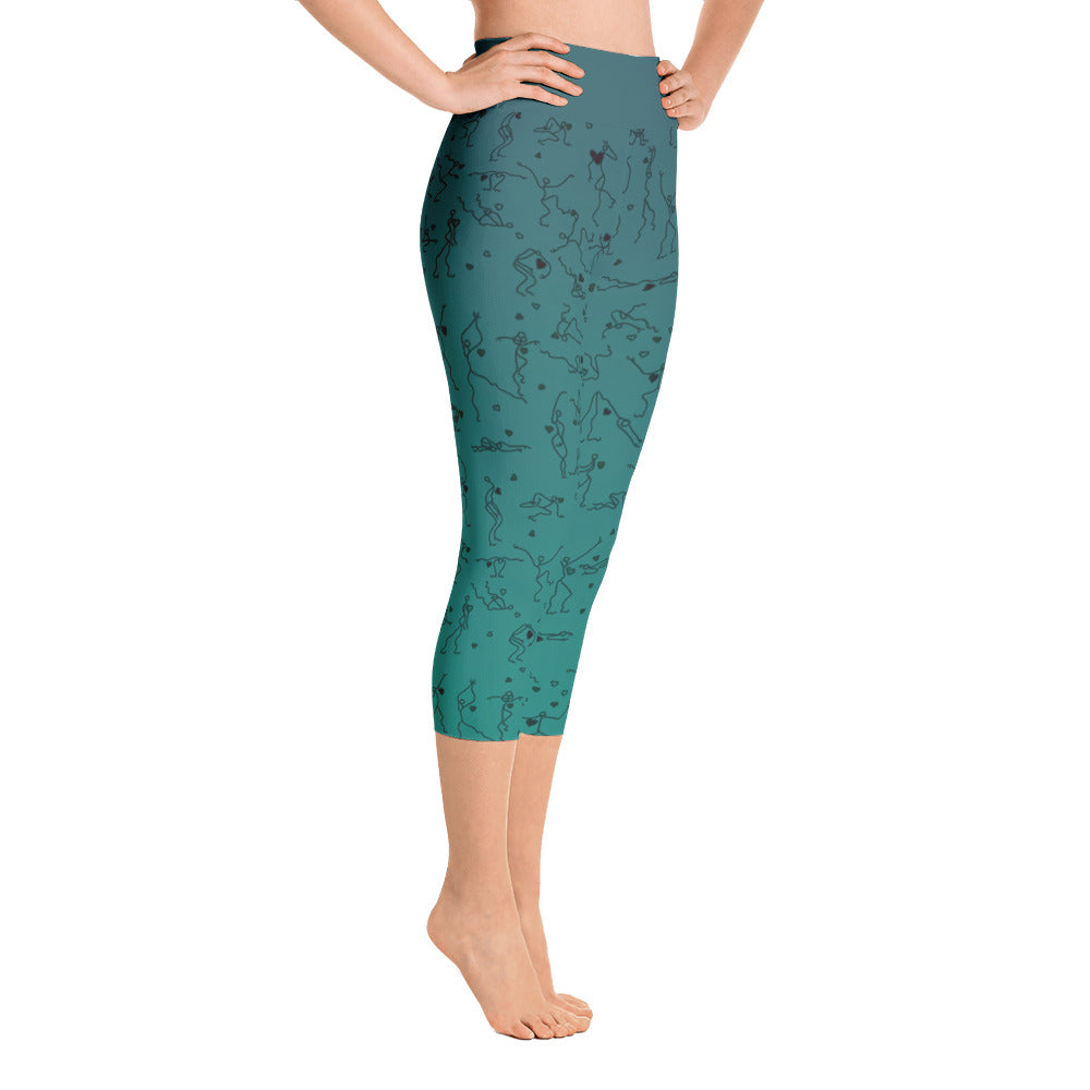Capri Leggings - "Debbie's Dancers" Original Art - Blue-Green Ombre