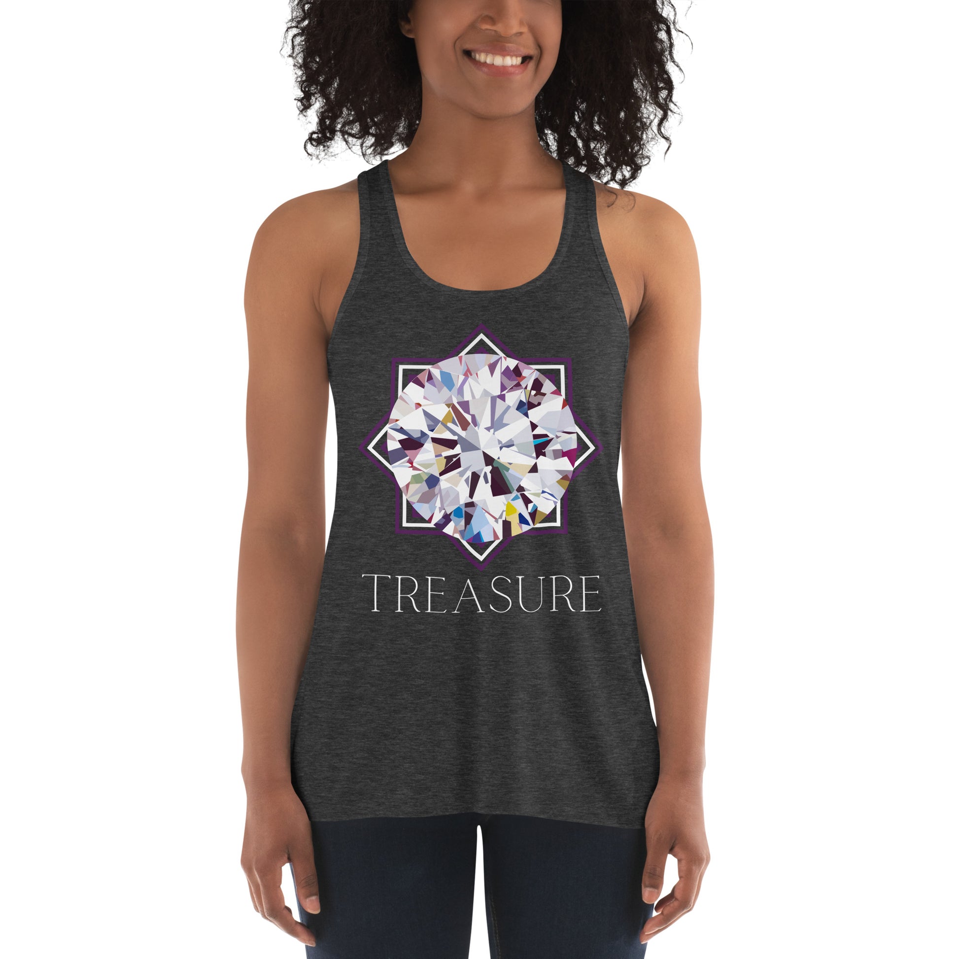 This racerback tank is soft with a loose, flowy fit. The shirring on the back also adds some feminine detail.